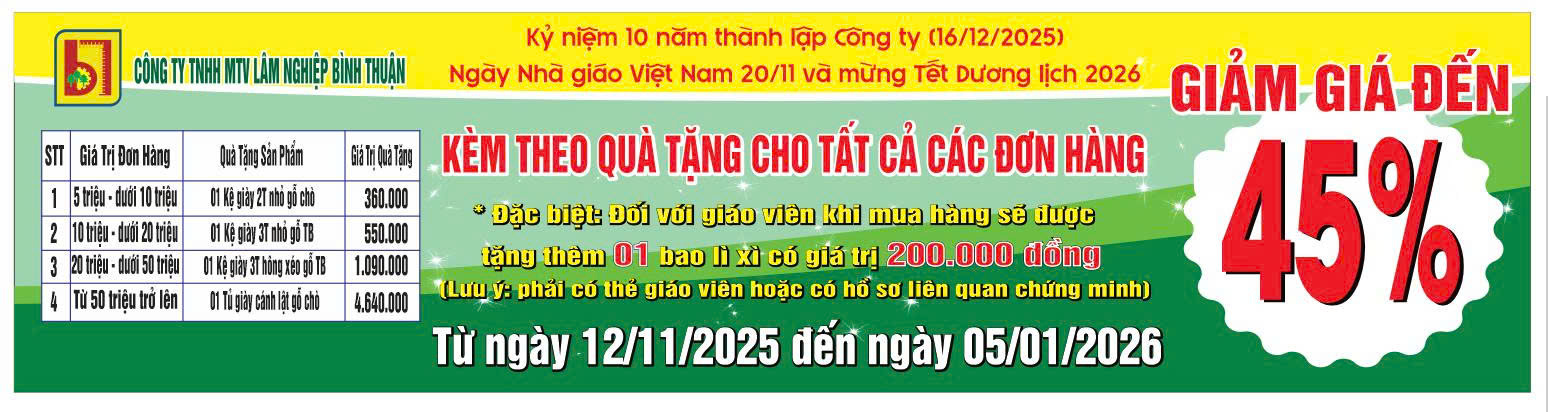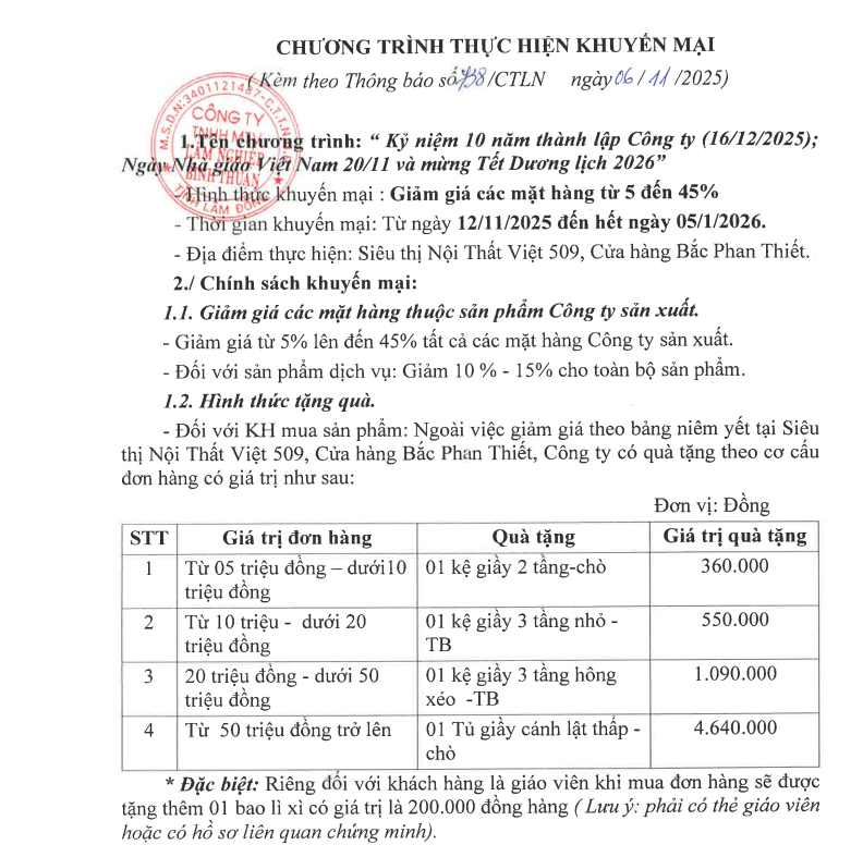 CHƯƠNG TRÌNH KHUYẾN MẠI 2025 ''KỶ NIỆM 10 NĂM THÀNH LẬP CÔNG TY (16/12/2025); NGÀY NHÀ GIÁO VIỆT NAM 20/11 VÀ MỪNG TẾT DƯƠNG LỊCH 2026
