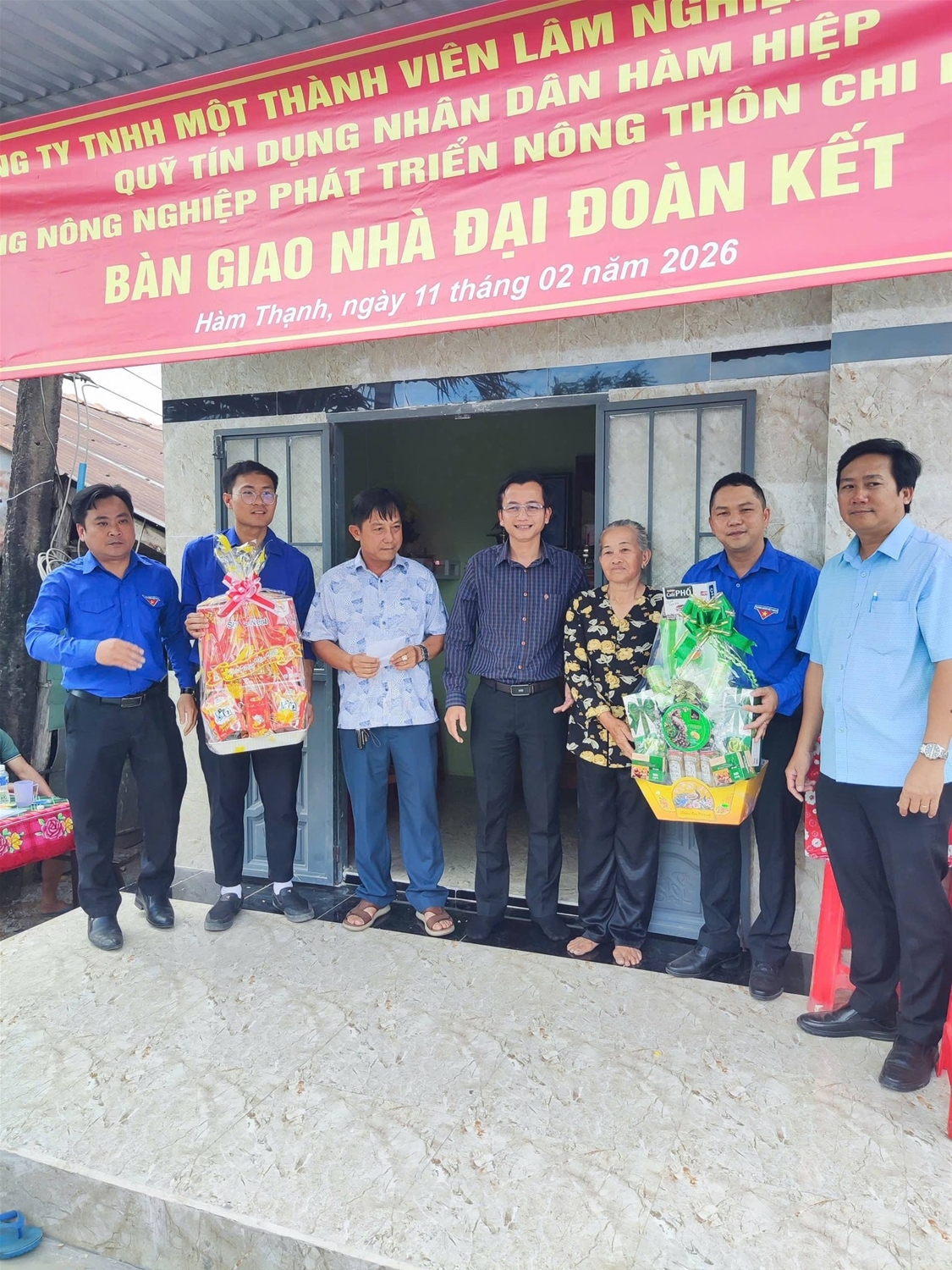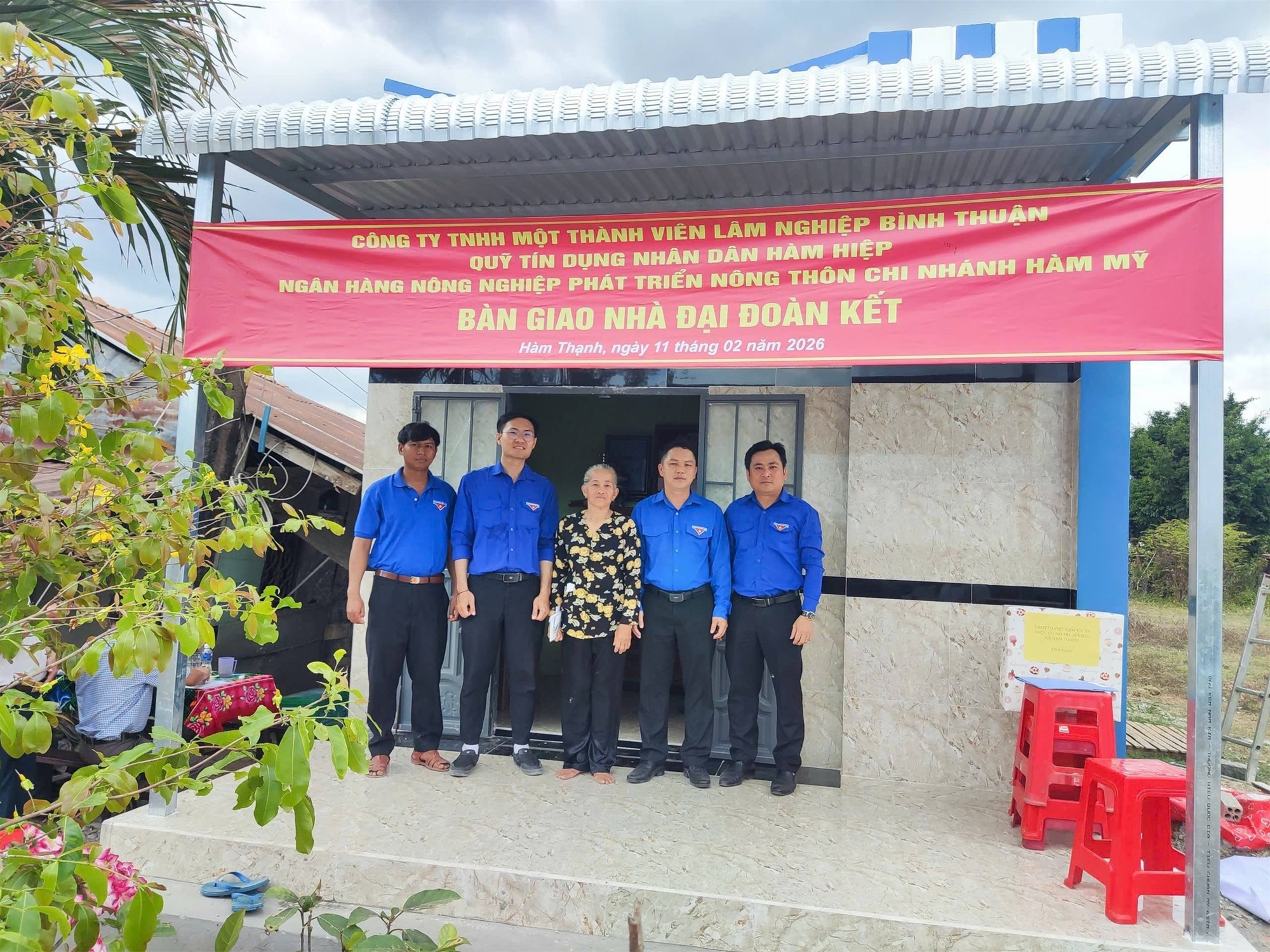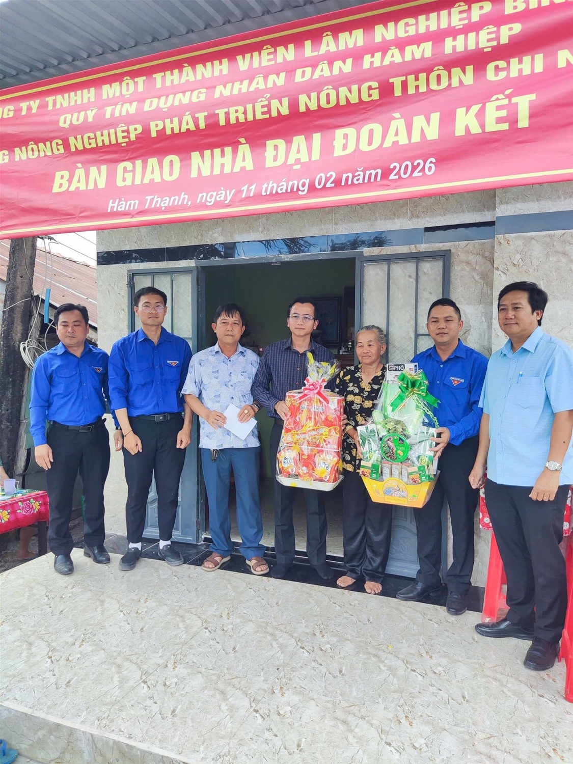 Nhằm chào mừng thành công Đại hội lần thứ XIV của Đảng. Nhân dịp trước thềm Tết Nguyên Đán Bính Ngọ. Đcs công ty TNHH MTV Lâm nghiệp Bình Thuận đã phối hợp với UBMTTQ Việt Nam xã Hàm Thạnh và một số đơn vị tài trợ đã tặng Căn nhà Đại đoàn Kết trị giá 115 triệu đồng (trong đó phía Công ty 40tr đồng) cho hộ bà Nguyễn Thị Lan tại thôn Dân Thuận, xã Hàm Thạnh, tỉnh Lâm Đồng. Tham dự lễ trao tặng có sự tham gia của đồng chí Trần Đức Quý - Phó TGĐ công ty và lãnh đạo Đảng uỷ, UBND xã Hàm Thạnh và các đơn vị cùng phối hợp thực hiện. Đây là hoạt động ý nghĩa về công tác an sinh xã hội, đồng thời là thể hiện sự chung tay góp sức của Đoàn viên thanh niên trong việc hỗ trợ những hoàn cảnh còn khó khăn trong cuộc sống để có cơ hội vươn lên.